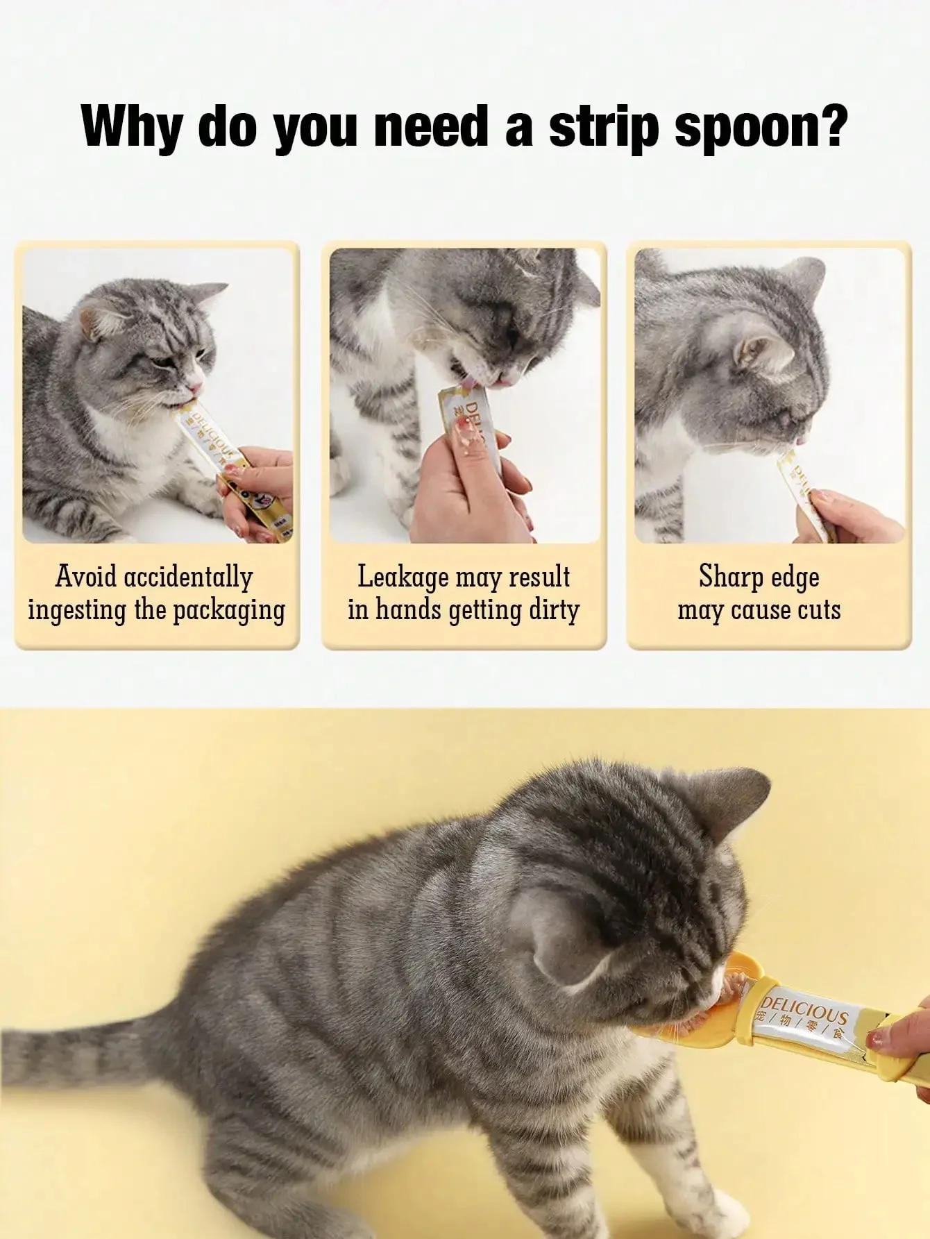 Cat Strip Feeder Spoon Long Handle Cat Food Strip Squeezer Pet Meat Mud Food Squeeze Treat Dispense Spoon For Cats Pet Supplies